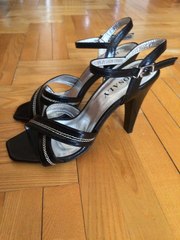 Босоножки из качественной искусственной кожи. Удобный устойчивый каблук 8 см. Длина по стельке 23 см. |