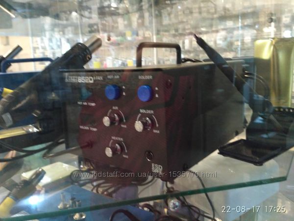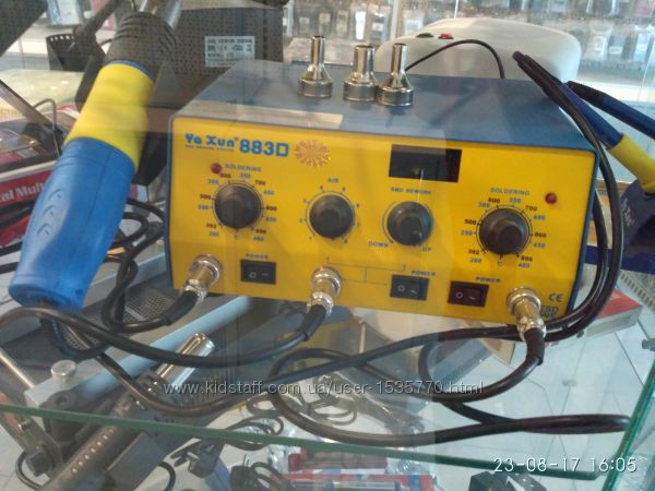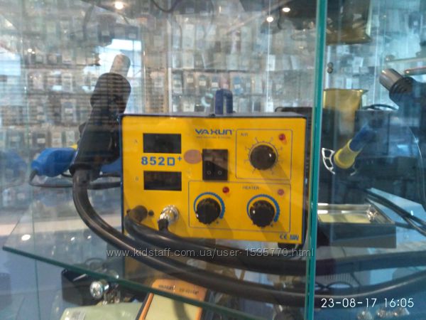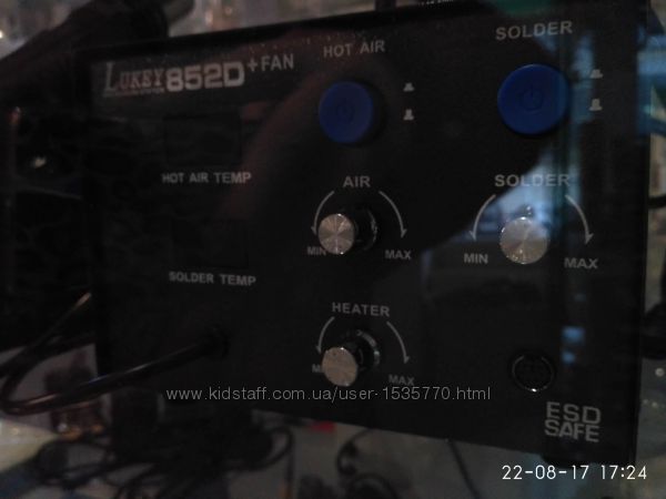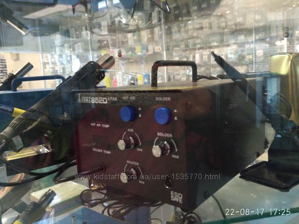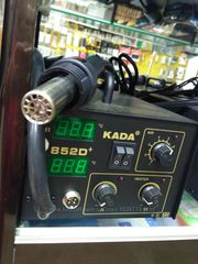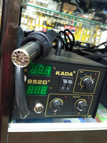 отображение информации: трехзначный светодиодный индикатор. Антистатическая защита, мощность паяльника 50 Вт, фена - 250 Вт, диапазон температур 100-480°С, автоматическое выключение. Нагнетатель расположен в ручке фена. LUKEY-852D+ FAN, Станция паяльная термовоздушная + паяльник Питание: 220 В;