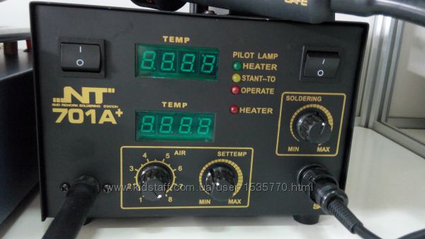Фен и паяльник имеют независимую регулировку температуры, цифровой контроль обеспечивает высокую стабильность температуры.