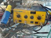 Фен со станцией соединяет только обычный электрический кабель, питающий миниатюрный центробежный насос фена. Скорость потока воздуха плавно регулируется с помощью потенциометра на лицевой панели в пределах: 100°С - 420°C.