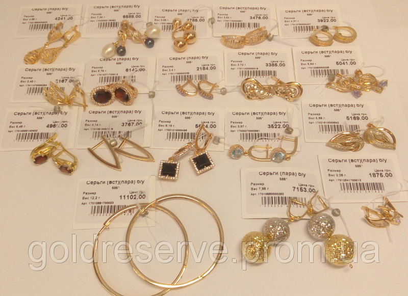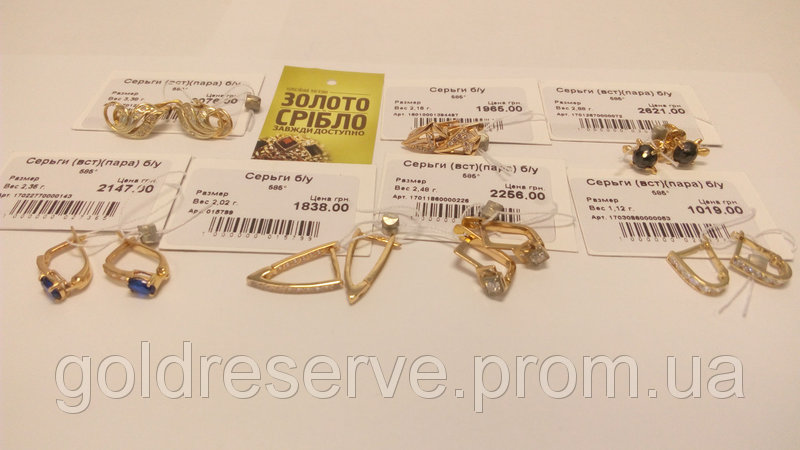 Золотые женские серьги из ломбардов и комиссионных магазинов.