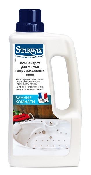 Средство чистит системы гидромассажных ванн согласно с требованиями гигиены благодаря тому, что содержит молочную кислоту. Удаляет известковый налёт, образовавшийся от воды и солей для ванн, жирный налёт от мыла, масел и других косметических средств для купания, а также SPA-препаратов.