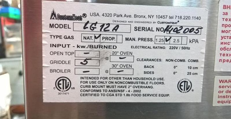 Продам гриль Custom Heat LG-12 новый. Гриль лава бу готовит продукты с эффектом мангала. Эффективно такое тепловое оборудование в заведениях для приготовления любых блюд: рыбы, мяса, овощей и т.д. Гриль сделан из специальной нержавейки, рабочая поверхность чугунная. - Расположение настольное - Подключение газ - Расход газа 0,45 куб.м/час - Мощность 5 кВт - Гарантия 1 год Есть в наличии другие грили бу, грили бу прижимные, плиты бу, блинницы и много вариантов бу техники в хорошем состоянии для предприятий HoReCa. Доставка по всей Украине! Звоните |