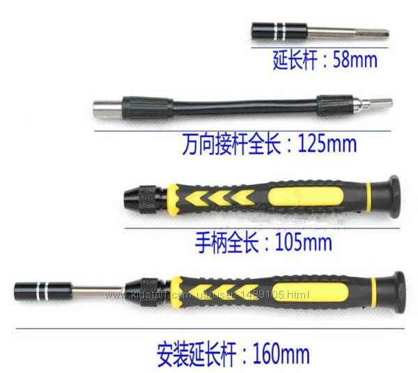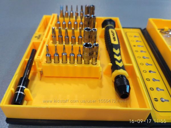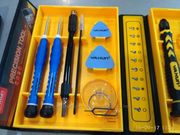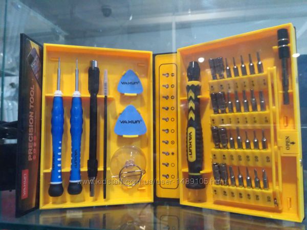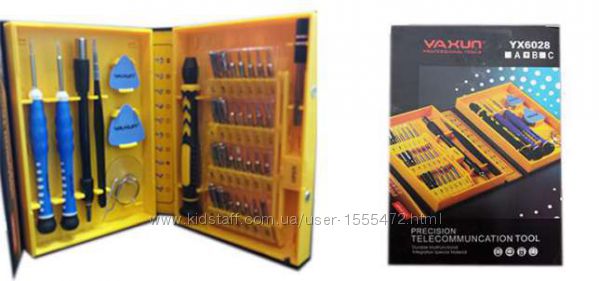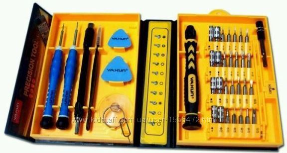 Набор подойдет для ремонта часов, радиотехники, мобильных телефонов iPhone, Nokia, Blackberry, Samsung, HTC и.т д .В комплект входит 38 предметов: присоска для снятия дисплея, медиатр, пинцет ,гибкий переходник для работы в недоступных местах