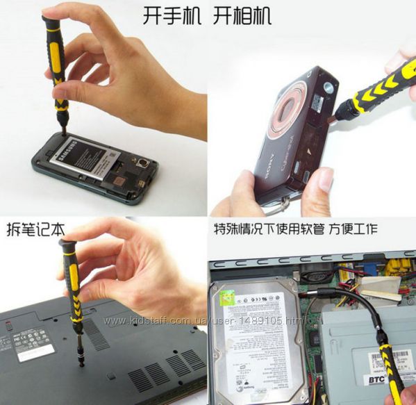 Данный набор предназначен для ремонта электронной техники (смартфонов, планшетов и т.п.).