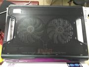 Верхняя поверхность подставки выполнена в виде металлической решетки, под которой расположен тихий вентилятор с бесступенчатой регулировкой скорости, что обеспечивает превосходное охлаждение ноутбука. Также на верхней поверхности расположены резиновые накладки, препятствующие скольжению ноутбука по подставке.