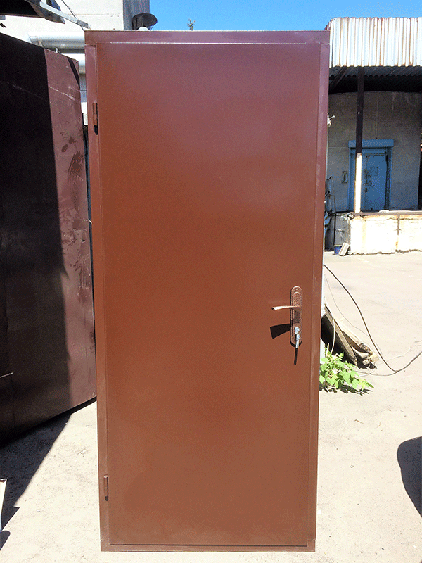 Такие двери отлично подойдут в качестве временных в квартиру, а также в качестве основных дверей в помещения, в которых не хранятся ценные вещи. Двери отвечают всем стандартным требованиям, обладают –шумо и –тепло изоляцией. Порошковое покрытие позволяет устанавливать данную модель в качестве уличного варианта. В комплектацию двери входят: нижний замок, нажимная ручка на планке, две петли, два листа металла (снаружи и внутри), короб из трубы. Размеры двери: 2040х860, 2040х960