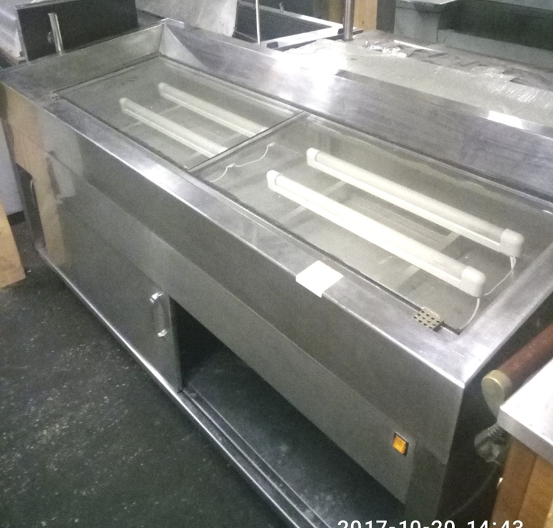 Продается прилавок с подсветкой торговый б/у в отличном состоянии. Материал корпуса нержавеющая сталь. Сверху на стекло с лампами выкладывается лед. Используется в магазинах и заведениях общественного питания для демонстрации продукции: рыбы, мяса, салатов, овощей, фруктов. Гарантия 6 мес. Доставка курьерскими службами. Также имеется другое оборудование для заведений КаБаРе. Звоните (прилавок с подсветкой, купить прилавок с подсветкой б/у) |