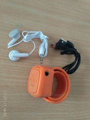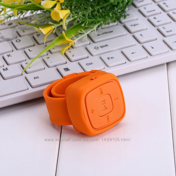 Стильный Mp3 player в не промокаемом корпусе из пластика и силикона, легко крепится на руку в виде браслета, или можно носить без браслета. Плеер в браслете можно мочить под краном или в душе, а так же под дождем он надежно защищен от попадания влаги (однако купаться с плеером не рекомендуется.)