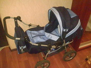 В комплекте также есть накидка на ноги, сумка, дождевик, ремни безопасности, перекладина перед ребенком (в сидячем положении), флисовая подушечка в изголовье (для сидячего ребенка). Все детали коляски съёмные и стираются в стиральной машине. Коляску можно разобрать до основания. Стоимость 800 грн