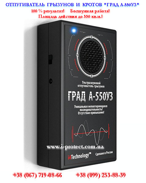 Ультразвуковий відлякувач Град 550 УЗ призначений для роботи в середніх і великих приміщеннях площею до 550 кв.м. Ефективно справляється як з мишами, так і з пацюками. Даний відлякувач представлений в нашому інтренет - магазині «I-protect» у нас сама мінімальна ціна на товар 1190 гривень.