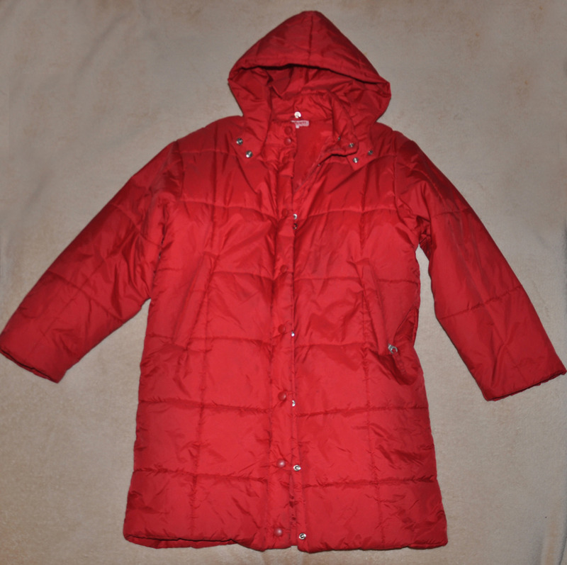 Красный плащ-пуховик для девочки. Демисезон-зима. Наполнитель синтетический. Длина - 80 см, длина рукава - 50 см, по спинке - 47 см. Капюшон отстегивается. Б/у, кнопки все на месте, на молнии нет нижнего бегунка. Приблизительно на 13лет / 158см. Доставка по Киеву - личная передача, по Украине Новой почтой за счет покупателя. Оплата наличными или перевод на карту ПриватБанка. |