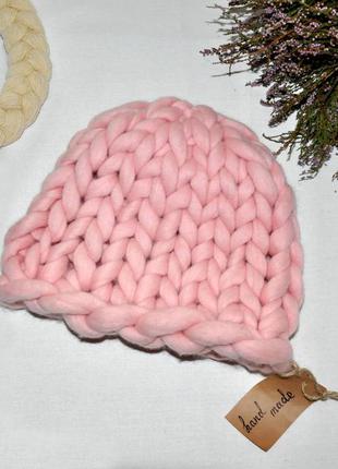 Пудрово-розовая шапка из мериносовой шерсти - Женская одежда