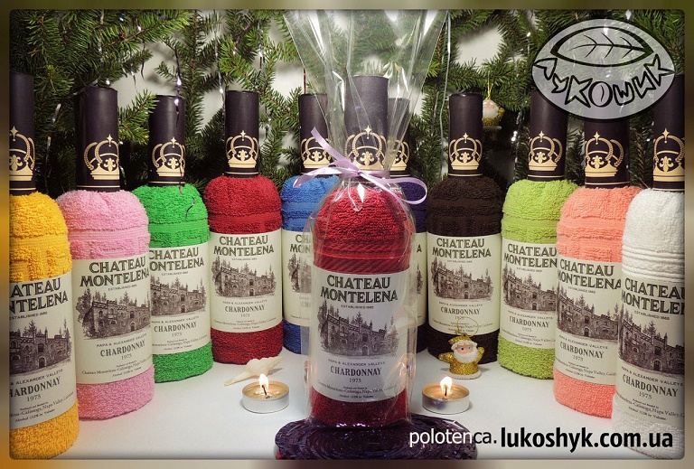 Полотенце-бутылка представляет собой полотенце, аккуратно упакованное в виде бутылки вина, с соответствующей пробкой и этикеткой.
