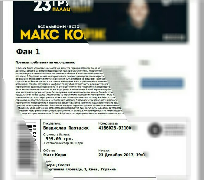 Билет на Макса Коржа ФАН1 Киев 23 декабря 5шт - Билеты на концерты