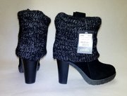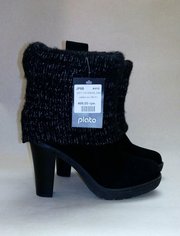 Очень красивая и стильная модель, шикарно смотрятся на ножке. Разработана в Германии. Сделана из искусственного чёрного замша, внутри флисовая подкладка, украшены в верхней части двойной красивой вязкой. Подошва крепкая, каблук удобный, устойчивый, 9 см. Сезон осень- весна.Осталась одна моделька 39 р. - 25 см |