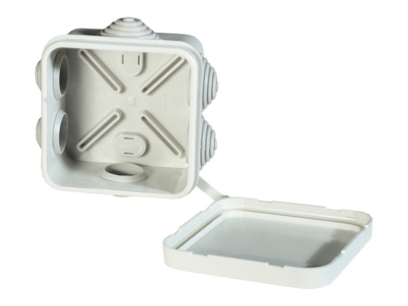 Коробка для открытого монтажа предназначена для организации мест коммутации проводов и кабелей. Данная серия коробок имеет конструкцию замка крышки, обеспечивающую степень защиты IP55 внутреннего пространства от проникновения пыли и влаги. Внутренний размер 85 x 85 x 40 мм, 6 выводов, мах. диаметр трубы 20мм, габаритные размеры 94,6 x 94,6 x 44. |