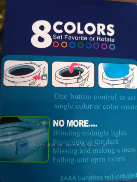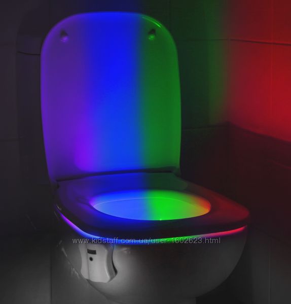 LED подсветка для унитаза антимикробная illumibowl lightbowl + датчик подсветка для унитаза c антимикробным действием! Подсветка для унитаза illumibowl lightbowl -необычное изобретение, очень удобно, если возможность включить свет в туалете ограничена. Подсветка оснащена датчиком движения, поэтому включится только при необходимости, будет светиться около 2 минут и не горит в дневное время. Включение подсветки происходит при приближении человека на 2-3 метра. При помощи кнопки можно менять цвет подсветки. В автоматическом режиме цвета плавно меняются через каждые 4 секунды. Всего в арсенале устройства 8 вариантов цветов.