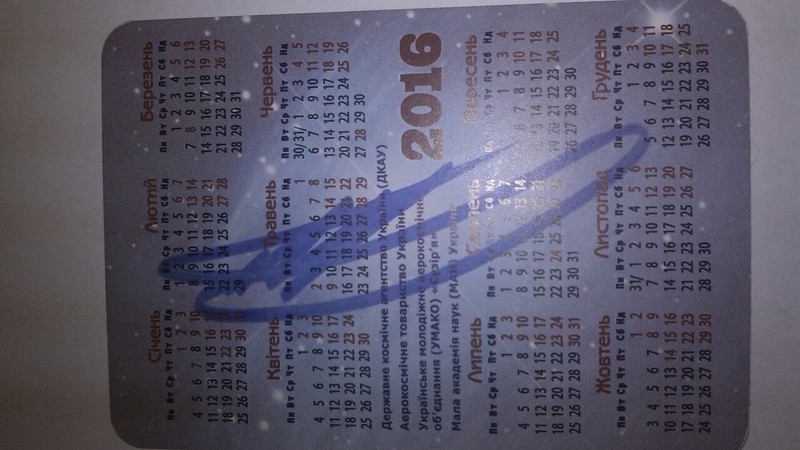 Автограф украинского космонавта Леонида Каденюка на карманном календарике 2016 года. Киев, доставка новой почтой |