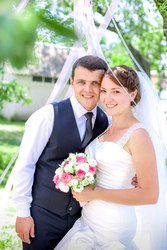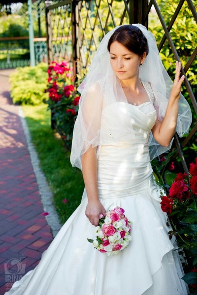 Продаю свое свадебное платье в хорошем состоянии после хим.чистки.А-силуэт,фатиновая юбка, верх атласный с красивыми складками, плечики расшиты бисером.Прекрасно подчеркивает фигуру. Есть небольшой шлейф. Фата длинная фатиновая, трех-уровневая со стразами-отдаю в подарок. Больше фото отправлю в личку. |