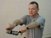 Тренажер Бизон 1м и система упражнений Сотского разработана для быстрого увеличения силы рук. Конструкция тренажера напоминает кухонную качалку с двумя вращающимися ручками, где с помощью контргаек создается сила трения на ручках - выполняются вращательные и сгибательно-разгибательные движения с равномерной нагрузкой по всей амплитуде движения, т.е. в любой точке на мышцы прикладывается одинаковое напряжение. На диске записаны упражнения повторяя которые прорабатываются мышцы по всему периметру руки, за 15 минут комплекса - руки становятся как кувалды, пальцы, кисть, предплечье, плечевой пояс горят огнем с первой тренировки, далее эффект еще больше.