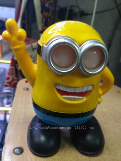 Интерактивная Игрушка Танцующий Миньон Minions Dance People 8115С Посипака из Мультика Гадкий Я Если Вы не знаете, что подарить ребенку на день рождения, чтобы удивить и обрадовать его – танцующий Миньон Посипака станет поистине оригинальным подарком, который точно понравится как девочке, так и мальчику и будет постоянно радовать и развлекать его. Милый Миньон Посипака – забавная интерактивная игрушка из популярного мультфильма «Гадкий Я», полюбился и запомнился всем детям. Один только вид забавного желтого человечка способен поднять настроение. Миньон весело танцует в такт воспроизводимой музыке и светится. Танцующий Миньон – это отличная игрушка для вашего ребенка за доступную цену. Подарок будет поистине оригинальным, ценным и увлекательным. Преимущества: Красочный и задорный Световые и звуковые эффекты Смешно танцует зажигательный танец Вызывает улыбку и заряжает позитивом Способствует развитию и координации движений, если ребенок будет танцевать с ним Выполнен из качественного антиаллергенного материала Материал: АБС-пластик и электронные компоненты Функции: музыка, танцы Питание: батарейки AA Рекомендовано для детей от 3 лет. При покупке нескольких единиц предлагаем скидки При оптовых закупках цены будут значительно отличаться * Цветовой оттенок товара может отличаться от представленного на фотографии и выбирается случайным образом, в том числе это зависит и от настроек монитора Вашего компьютера!