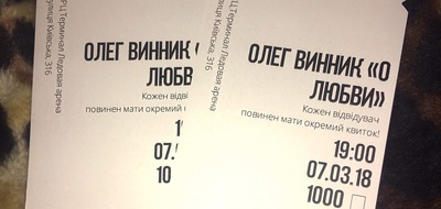 Продам, предлагаю - частное лицо: Билеты на концерты, Украина, Киев и областьКод: 725477 Создано: 05-03-2018 00:52
