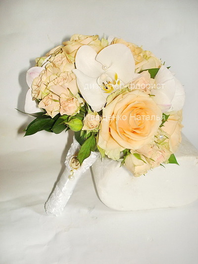 Букет невесты в персиковом цвете. Свадебные букеты на своих стеблях и на ручке под заказ в Киеве. У нас широкий ассортимент цветов, декора. Работают лучшие флористы только для Вас! Т.0673668735 Наталья г.Киев самовывоз или доставка по Киеву. |