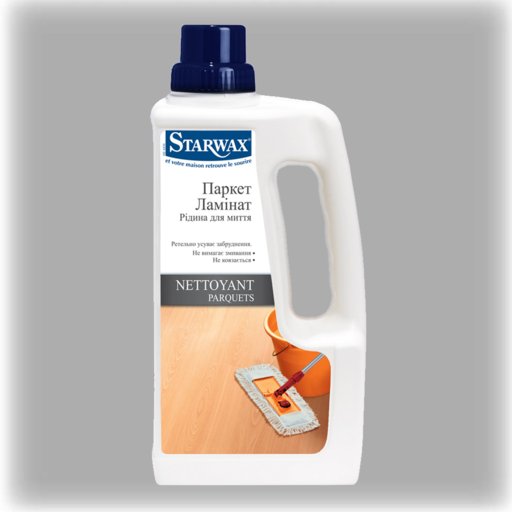 Концентрированное средство для регулярного ухода за лакированным паркетом и ламинатом. Очень экономично. Для применения на 3-м этапе «Регулярный уход» либо самостоятельно. Устраняет загрязнения и пятна на поверхности паркета и ламината по мере их появления. Не придаёт блеска. Нейтральный pH позволяет часто использовать средство. Им можно мыть полы, покрытые Защитной эмульсией Starwax и Средством для обновления и придания блеска Starwax. Не требует смывания чистой водой. Не образует скользкого слоя.