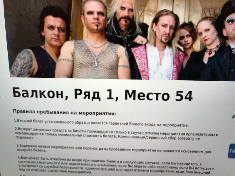 Продам 2 билета на концерт Therion - Билеты на концерты