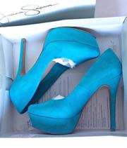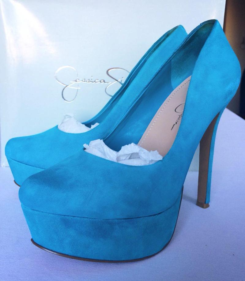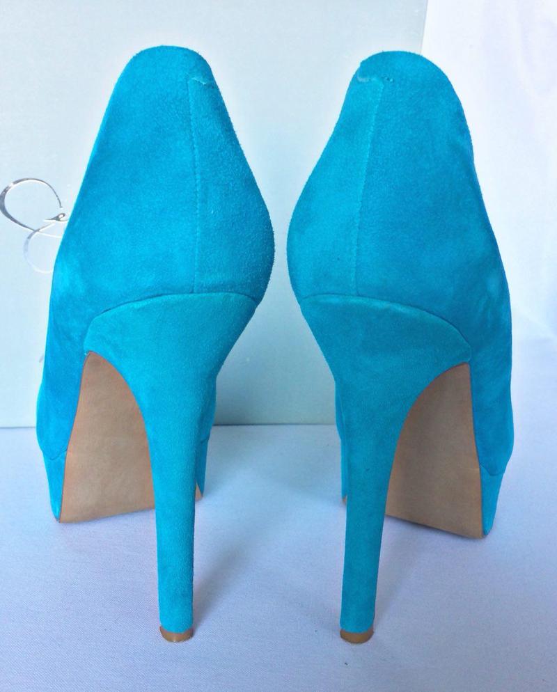 Стильные аквамариновые туфли от Jessica Simpson (оригинал) из натуральной замши. Состояние идеальное, деффектов нет, набоечка родная, новенькая, обувались один раз на фотосессию, оказались немножко маловаты, поэтому и продаются. Замеры: Стелька - 25 см Каблук - 13,5 см Платформа -3,5 см Продаются в своей коробочке с логотипом из фирменного магазина Walker, в котором были куплены. Дополнительные фото по запросу. +380934789797 Евгения |