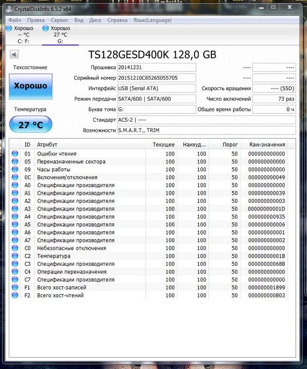 Наружный SSD Transcend 128GB USB 3.0 Состояние как внешнее так и техническое отличное. На фото есть смарт.Комплект SSD чехол и кабель. Цена без торга. Тип накопителя Внешний Объем 128 ГБ Интерфейс USB 3.0 Скорость чтения до 410 МБ/с Скорость записи до 380 МБ/с Энергопотребление 5 В Время наработки на отказ 1 млн часов Тип ячеек памяти MLC NAND Габариты (Ш х Г х В) 92 x 62 x 10.5 мм Вес 56 г |