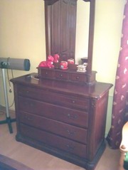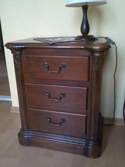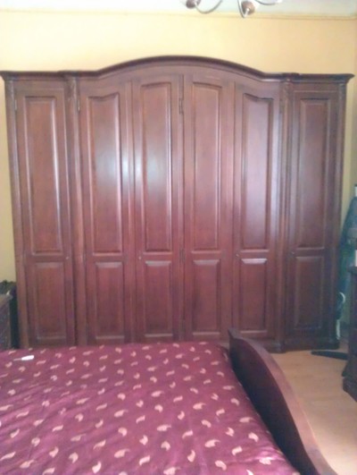 дерево, румынская спальня: 6-дверный шкаф, 2-х спальная кровать, каркас, матрац, комод с заркалом, 2 тумбочки. Цена нового - 5.5 тыс у.е. Плюс люстра - чешский хрусталь. |