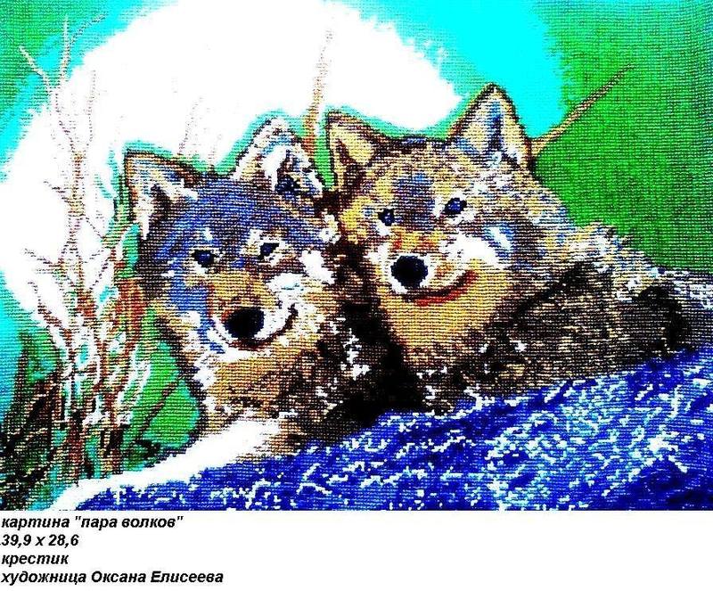 картина пара волков - ручная работа, вышита крестиком. размер - 39,9 на 28,6 см. художница - елисеева оксана. |