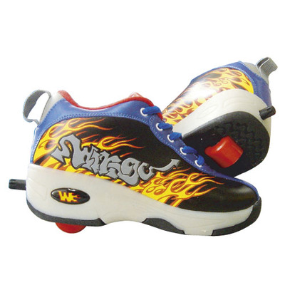 Кроссовки и ролики в одном Стильный дизнайн Мягкая и светлая подошва, можно использовать как повседневную обувь Обувь, которая удивляет Если вдруг вы увидели, как ребенок внезапно сменил свою походку на плавное скольжение – вы стали очевидцем действия роликовых кроссовок. Теперь не нужно переобуваться, когда вы хотите двигаться быстрее – достаточно просто нажать кнопку в подошве вашей современной обуви – и можете ехать! Затем, если поверхность не позволяет кататься, защелкните ваши ролики вовнутрь подошвы – и вы снова в кроссовках! В отличие от обычных роликовых коньков, нет необходимости носить с собой дополнительную пару обуви, - достаточно просто нажать кнопку – и вы уже «переобуты». Ассортимент представлен моделями разного дизайна от «классики» до «ультра». Ролликовые крос совки оснащены одним колесом в пятке для более маневренного и свободного катания Материал Роликовые кроссовки Wingo изготовлены из высококачественных дышащих, надежных и выдерживающих большие нагрузки материалов, заменяющих кожу. Подошва Колодка кроссовок адаптирована с учетом возрастных особенностей ребенка, а увеличенная толщина подошвы амортизирует и позволяет исключить перегрузки свода стопы. Шнуровка Регулируемая шнуровка и широкая носовая часть кроссовок обеспечивает оптимальную фиксацию, не стесняя при этом движений.