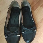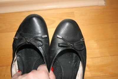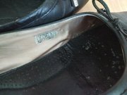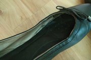 Снаружи состояние хорошее. по стельке 25см на низком ходу, кожа мягкая, туфли легкие и очень удобные на носочках есть несущественные потертости Внутри надорвана подкладка |