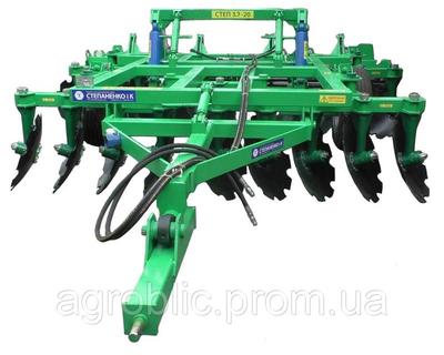 Особенность дисковых борон типа СТЕП ДУГА в регулировании углов атаки дисков. Преимущество, этой дисковой бороны в том, что при увеличении угла атаки зазор между дисками остается постоянным, что обеспечивает высокую равномерность глубины обработки. Агрегаты оборудованы дисками с вырезами ("Ромашка"), которые имеют острую кромку по всему периметру, прекрасно измельчают стебли послежатвенных остатков и сорняков, равномерно распределяют их по всей глубине обработанного слоя почвы, что приводит к разложению органических веществ без минерализации и предотвращает окисление почвы. Так как ось вращения расположена под углом к горизонтали диски одновременно подрезают нижний слой пласта почвы, соответственно энергоемкость обработки почвы и износ дисков этих агрегатов меньше, чем в известных тяжелых дисковых борон, что свою очередь еще и дает экономию топлива.