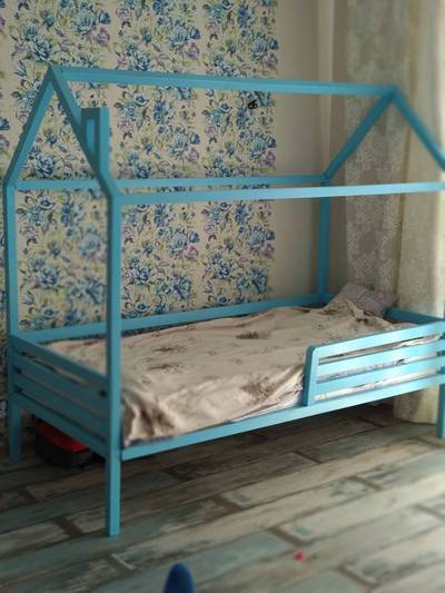 Продам детскую кроватку-домик небесно-голубого цвета. покрашена в два слоя. верхний слой эмульсионная краска на водной основе. размер 1м. на 2 м. под матрас 90 см на 1.90см. основа - ламели. в использовании меньше месяца. продажа по причине покупки двухъярусной кровати. Есть некоторые моменты, трещину видно на фото. на сборку и использование не влияяет. Покупали на заказ, профиль _milka_pilka_ за 5200. продаем за 3500 |