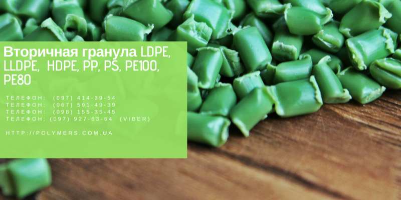 Используется вторичная гранула для изготовления: выдув, литье, экструзия толстых пленок (от 50 микрон), пакетов, труб.