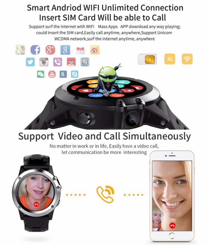 Водонепроницаемые умные смарт часы телефон на базе Android 4.4, 1.9 дюймов MTK6572.