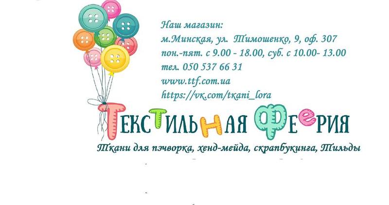 Интернет-магазин «Текстильная феерия» - прямой поставщик тканей и фурнитуры для творчества. На нашем сайте предоставлен большой выбор тканей: хлопок, лен, плюш, мех, трикотаж, большой выбор фурнитуры, аксессуары для кукол и многое другое. Мы ежедневно обновляем наш ассортимент. У нас самые низкие цены на нашу продукцию, быстрая отправка товара и возможность забрать товар в г. Киев. Постоянные скидки Вас очень порадуют. Будем рады видеть Вас на нашем сайте. http://ttf.com.ua/ |