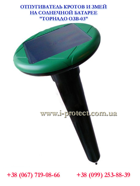 Боротьба з кротами, дрібними гризунами та іншими городніми шкідниками буде ефективною лише в тому разі, якщо використовувати правильні засоби. Саме таким засобом є відлякувач кротів Торнадо ОЗВ.03, який забезпечує надійний захист посівів і дозрілого врожаю від знищення. Відлякувач кротів, змій «Торнадо ОЗВ.03» являє собою спеціальний прилад, який через певні часові проміжки генерує звукові коливання і вібрації. Мешкаючі на ділянці гризуни сприймають такі сигнали як джерело потенційної небезпеки і залишають межі ділянки, що захищається. Площа захисту становить до 10 соток. Відлякувач Торнадо ОЗВ.03 оснащений сонячною батареєю збільшеного розміру ( промислового виробництва), що говорить про якість самої батареї. За рахунок високої чутливості вона дозволяє приладу працювати навіть у похмуру погоду. Завдяки в сукупності з батареями (в комплекті не йдуть) забезпечує до 3 сезонів безперебійної роботи. Основним конструкційним елементом пристрою є сердечник, всередині якого розміщуються батарейки. Він дозволяє змінювати вийшли з ладу елементи живлення, не витягуючи відлякувач з грунту. Такий автономний спосіб живлення дозволяє встановити прилад де завгодно, навіть там, де немає можливості підвести електроживлення. Корпус виконаний з міцного пластику , що дозволяє експлуатувати прилад в будь-яких погодних умовах. Купити Торнадо ОЗВ.03, який забезпечить Вашій земельній ділянці тривалу надійний захист від шкідників, за вигідціною можна в нашому онлайн-магазині «I-Protect».Безкоштовна доставка по Україні. Гарантія 1 рік. Більш детальніше по т. 0677190866