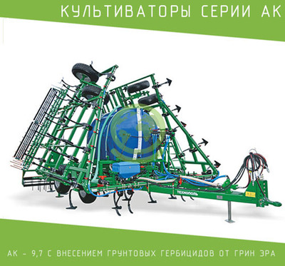 Культиваторы серии АК – 9,7 — универсальные, широко захватные, предназначены для ресурсосберегающей предпосевной и паровой культивации почвы, подрезания и вычесывания сорняков, а также выравнивания и уплотнения поверхности почвы под посев. Преимуществом агрегата является перепускные цилиндры, гидрозамок регулировки глубины обработки, которые в совокупности позволяют производить регулировку с максимальной точностью без дополнительных усилий. Применяется на всех видах почвы за счет своей универсальности в виде множества регулировок самого культиватора и его навесного оборудования. Рабочая ширина захвата 9,7 метра. Дополнительной функцией агрегата является возможность внесения в почву жидких удобрений и грунтовых гербицидов. Вы можете ознакомиться со всей продукцией фирмы ГринЭра, заглянув в каталог, и купить не только культиватор, но и другую технику.