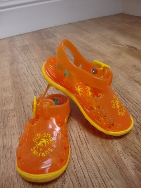 босоножки для бассейна и для пляжа, желто-оранжевые - размер 21 (очень удобно к морю, малыш не поранится гуляя по пляжу)