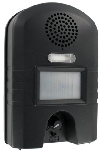 Ультразвуковой отпугиватель WK-52 поможет надежно защитить Вашу территорию от диких собак, кошек, лис и других животных. Он оснащен семидиапазонным регулятором частоты (регулируя частоты можно отпугивать тот или иной вид животного) и специальным светодиодом, выдающим короткие вспышки, который является дополнением отпугивающего действия ультразвука. Устройство представляет собой недорогой, но весьма эффективный способ от бродячих и диких животных, для таких объектов, как складские помещения, коттеджи, дачи и так далее. Данный прибор является полностью автономным. Для его работы необходимо установить в отсек на корпусе четыре элемент питания типа D. Помимо того, возможно питание от электросети в 220В, единственное для этого необходимо будет докупить адаптер питания. Выбирая место для установки, необходимо делать учитывая тот фактор, что встроенный инфракрасный датчик движения обладает дальностью действия 14-16 метров. Основываясь на практических знаниях, полученных специалистами нашего сайта, было доказано, что именно на таком расстоянии и при угле 90 градусов, устройство способно обнаруживать движущиеся объекты и запускать процесс отпугивания. Охраняемая площадь, которой может составлять до 200 квадратных метров. Продолжительность работы одного цикла встроенного генератора составляет 7 секунд, в течение которых происходит и 5 световых вспышек, после чего следует пятисекундный перерыв. Если по истечению этого времени движение в охраняемой зоне не прекратилось, устройство повторяет подачу отпугивающего сигнала, и так до тех пор, пока животное не покинет территорию.