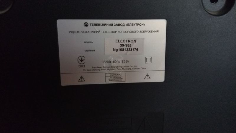 Продам телевизор Электрон 39-985LED б/у на ремонт или запчасти. Матрица целая, подставка и пульт есть. Телевизор ремонтировался 1раз в районном центре и проработал 3 мес. Племянница отдала мне его, но для моей квартирки он большой. Обменяю его на монитор или смартфон рабочие. |