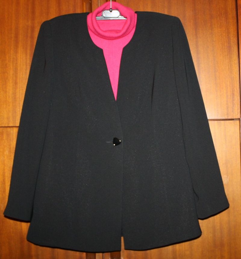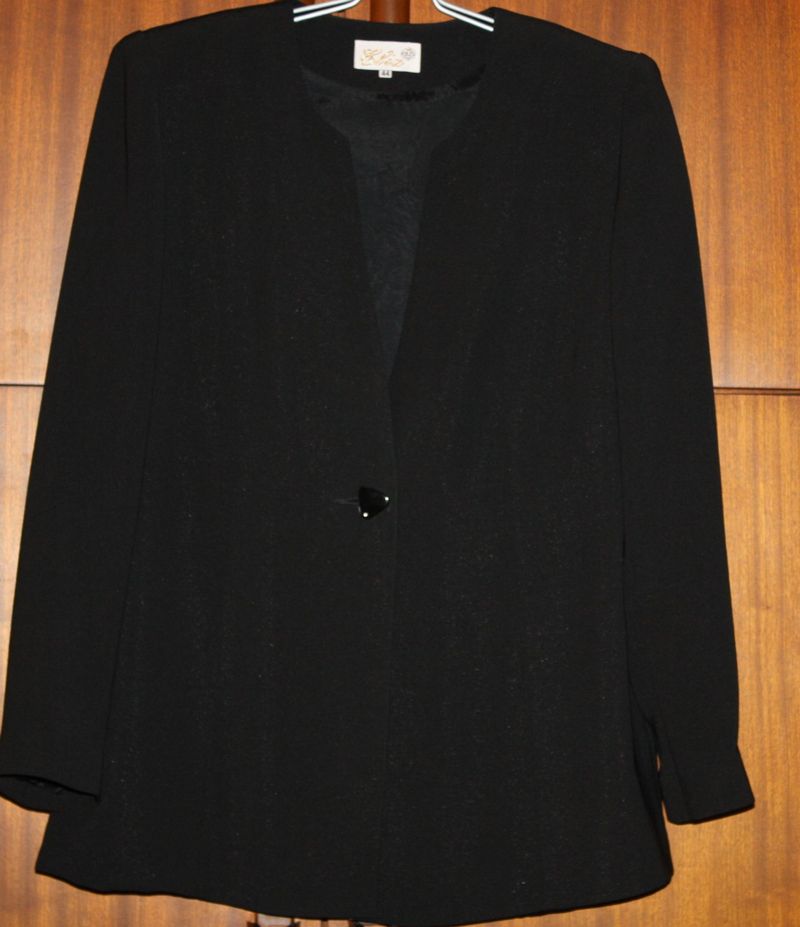Продам черный легкий пиджак ELIX приталенного силуэта с застежкой на одну пуговицу раз. 50-52 Пиджак практически новый т.к.одевался считанные разы. Смотрится очень хорошо как с блузкой, топом так и с гольфом.Подходит к юбке и брюкам. ширина под мышками -54 ширина по талии - 50 ширина спинки - 42 длина рукава - 60 длина пиджака - 70 |