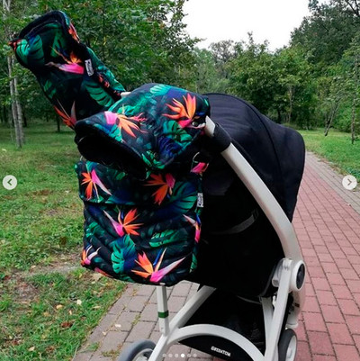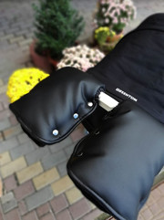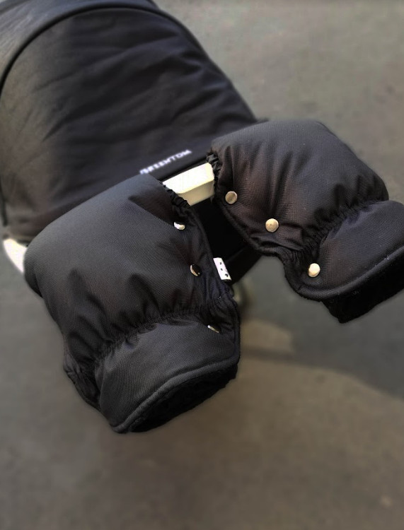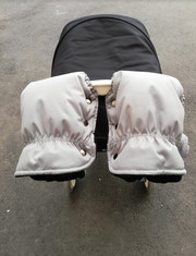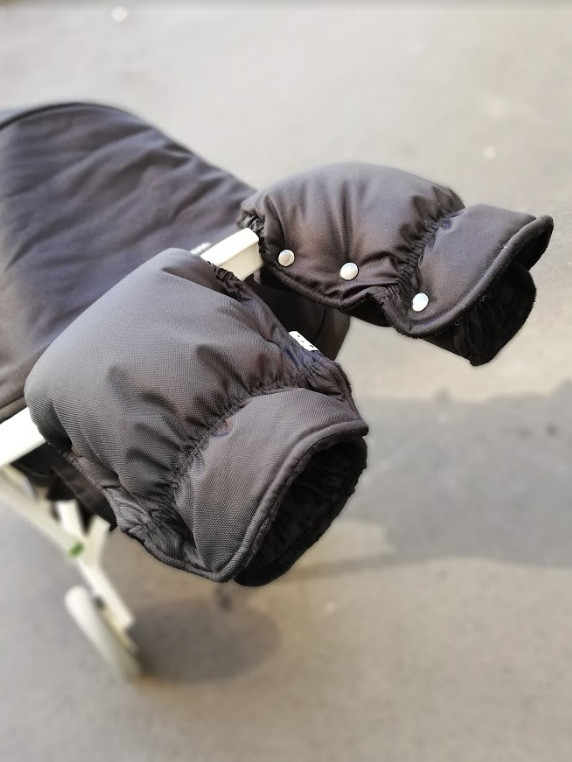 Муфта для рук на коляску идеально подходит на все типы колясок. Удобное крепление на 3х кнопках. В месте соприкосновения с ручкой вшиты резиночки. Таким образом наши рукавицы подходят на ручку коляски любого диаметра и не будет задувать холодный ветер.