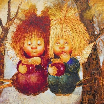 Прекрасная картина маслом на подарок "Ангелочки с вареньем - Картины, рисунки