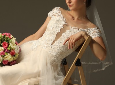 Юбка состоит из 3 слоев: атлас, сетка легкого бежевого цвета, молочная сетка вверху. За счет этого создается пышность и легкость.